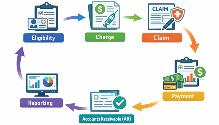 A robust revenue cycle is contingent upon a clear, consistent, and well-managed workflow. At Corelynx LLC, billing process is meticulously designed to mitigate revenue loss, minimize delays, sustain steady cash flow, and eliminate revenue leakage at each stage of the process.